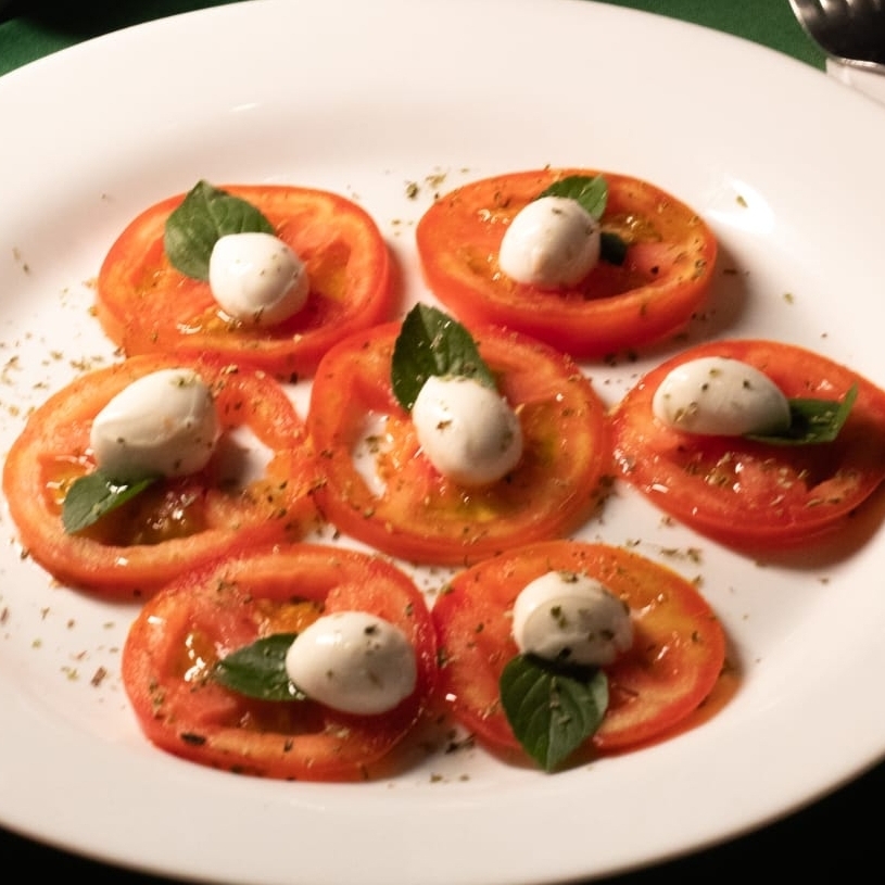 Tomate , mussarela de búfala , azeite,manjericão e orégano.