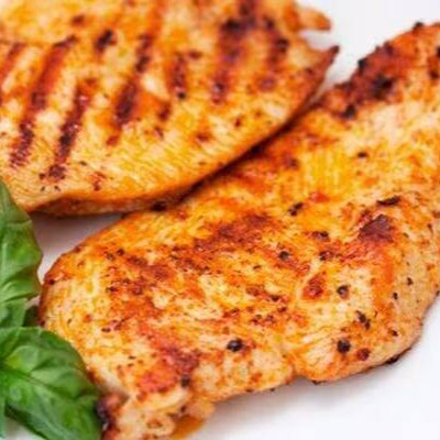 Suculento file de frango grelhado na chapa, bem temperado e preparado na hora, garantindo sabor e maciez em cada pedaço.