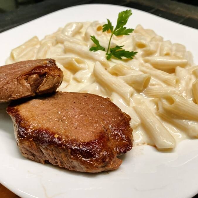 Um clássico elegante e cheio de sabor , acompanha uma deliciosa massa penne ao Molho branco com parmesão.