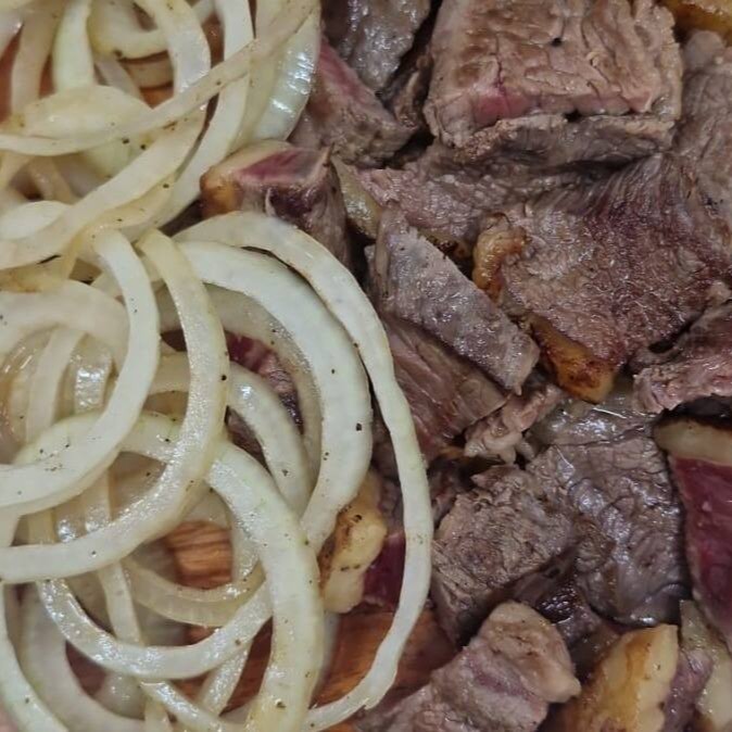 Picanha fatiada no ponto perfeito, macia e suculenta, servida em porção especial para 2 pessoas. Um sabor irresistível para compartilhar servido com arroz carreteiro e fritas.