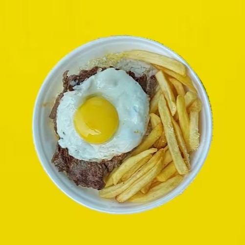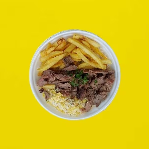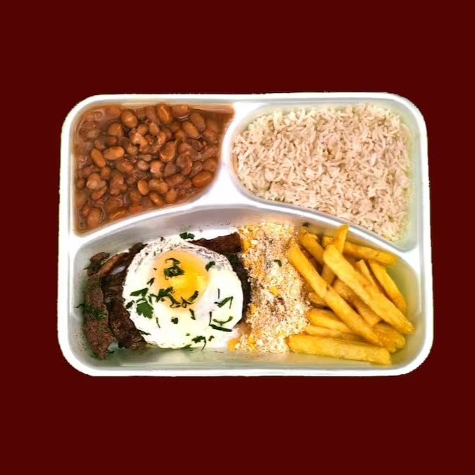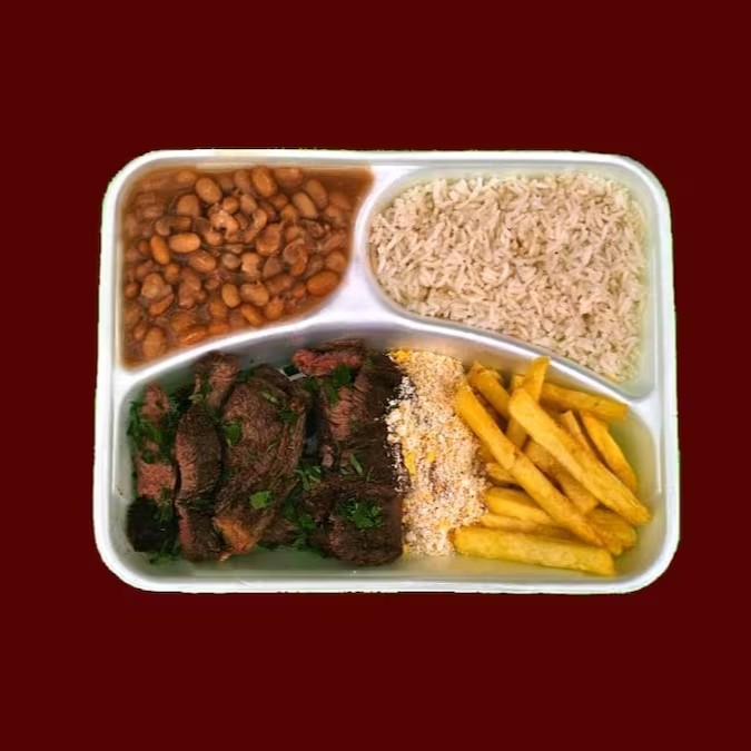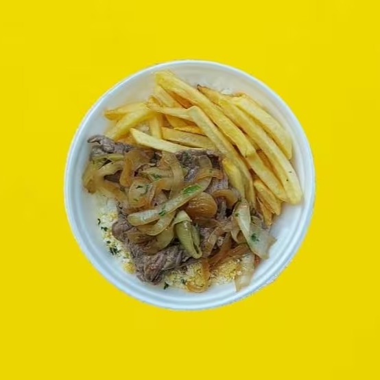 Acompanha arroz, feijão, fritas, farofa e cebola