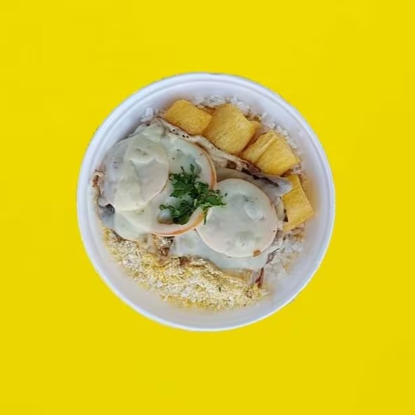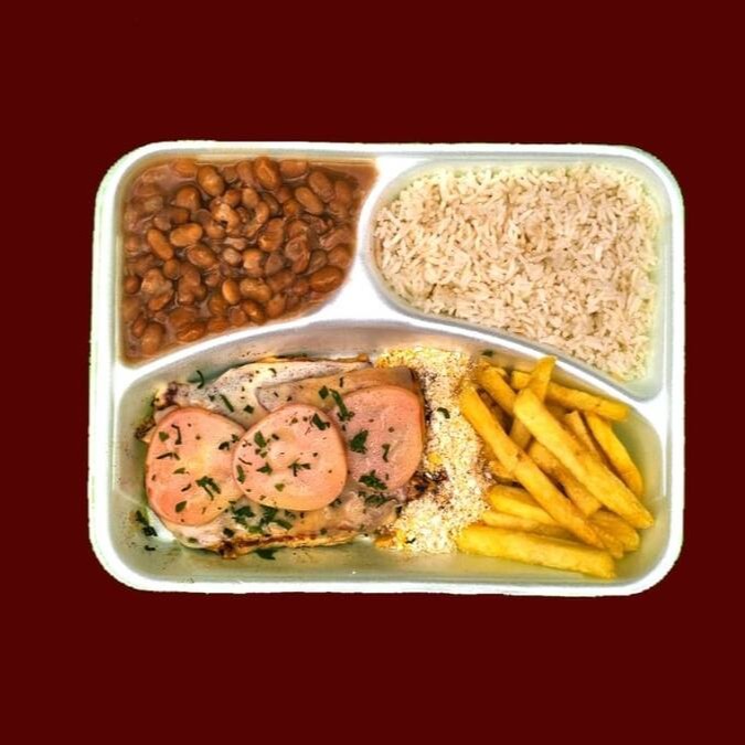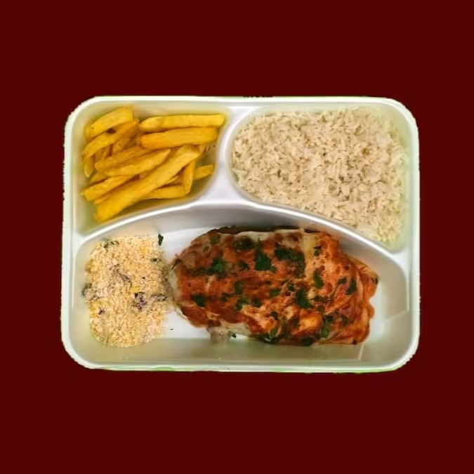 Acompanha arroz, feijão, Fritas e farofa