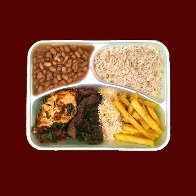 Acompanha arroz, feijão, fritas, farofa .