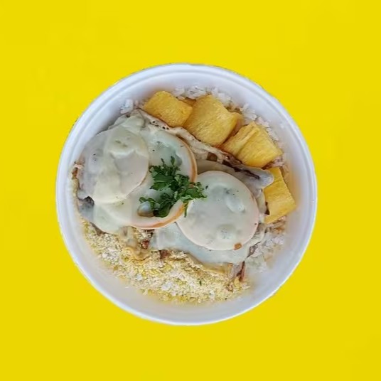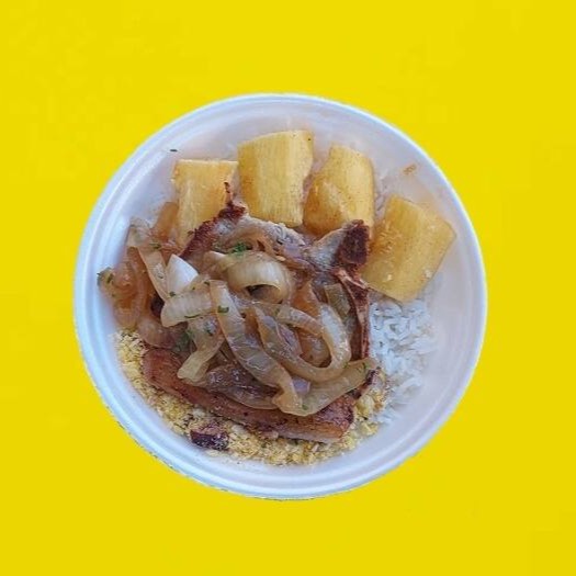Acompanha arroz, feijão, mandioca, farofa e cebola
