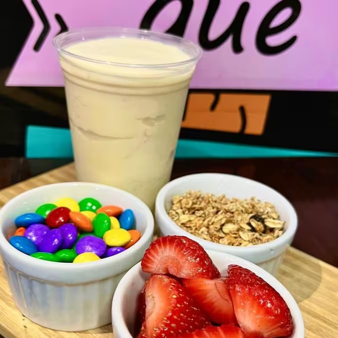 Você pode personalizá-lo com os Quatro acompanhamentos inclusos, de acordo com a sua vontade, incluindo as opções das nossas frutas frescas! Ah, e não se esqueça dos nossos irresistíveis adicionais extras... Eles oferecem um toque de sabor que vão conquistar seu paladar!!!