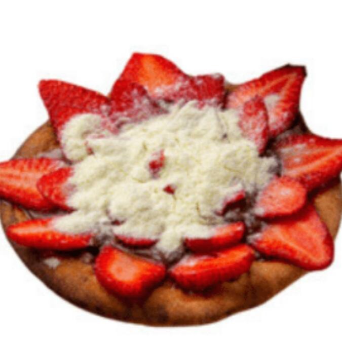 Delicioso recheio de chocolate ao leite cremoso, coberto com morango fatiado.