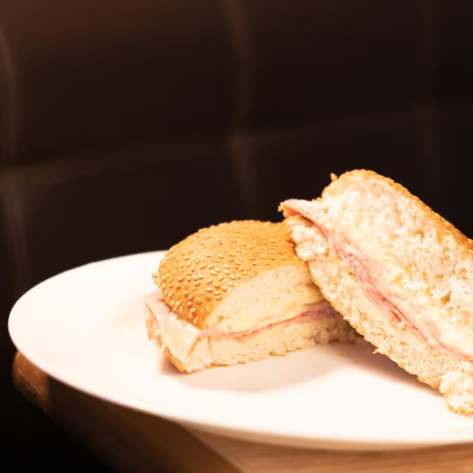 Pao brioche ,presunto,queijo,ovos,salada,e maionese .