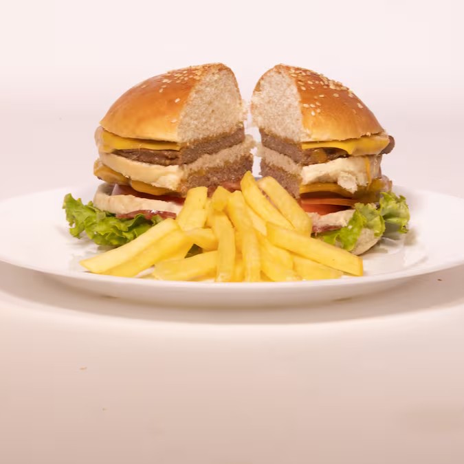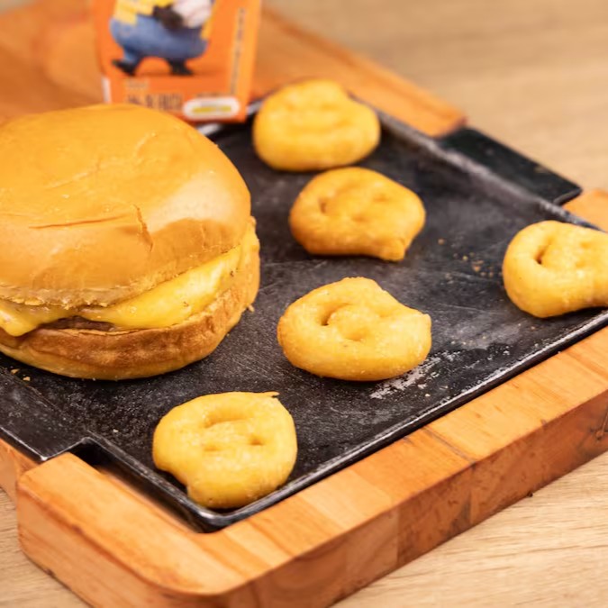 Pao brioche ,hamburguer ,queijo,batata kids ,suco kapo