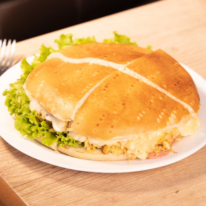 Bacon ,ovo,frango,Catupiry,presunto,queijo ,salada e maionese