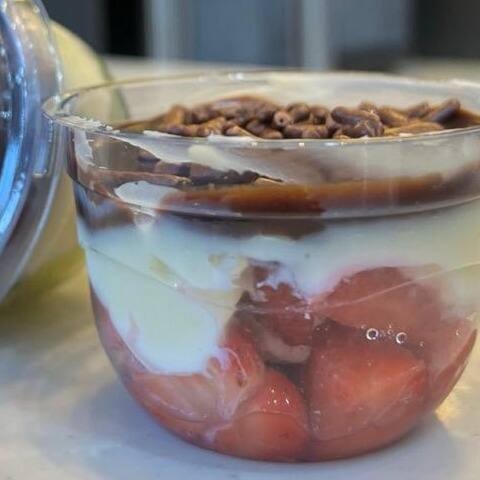 Bombom de Pote: morangos frescos, brigadeiro gourmet de Ninho, ganache de chocolate e toque de granulê. Um doce equilibrado, cremoso e irresistível a cada colherada!!