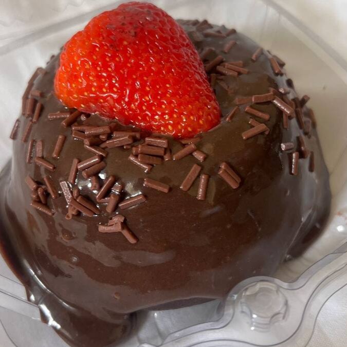 Bolo de chocolate mini Vulcão fofinho recheado com uma generosa calda chocolate cremosa que transborda a cada pedaço. Perfeito para quem ama sobremesa fresquinha e com muito sabor!