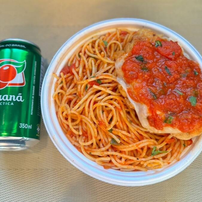 Espaguete & Parmegiana Frango + Lata Guaraná + R$ 14,99 Leve Outra Marmitex