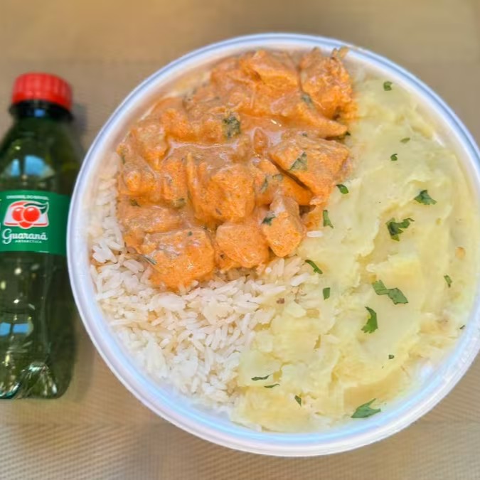 Strogonoff Frango & Purê + Guaraná Pet + R$ 18,99 Leve Outra Marmitex