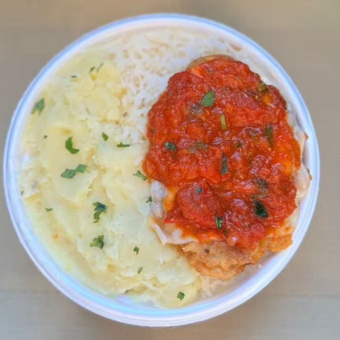 Frango Parmegiana & Purê + R$ 18,99 Leve Outra Marmitex