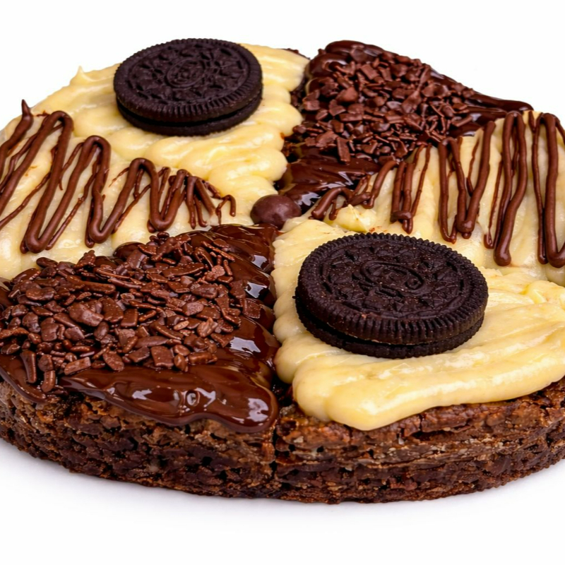 Nosso delicioso Brownie cortado em 6 fatias, sendo duas fatias com cobertura de brigadeiro, duas fatias com cobertura de brigadeiro de Ninho com Nutella e duas fatias com cobertura de brigadeiro de Ninho com Oreo. Peso aproximado 650 gramas.