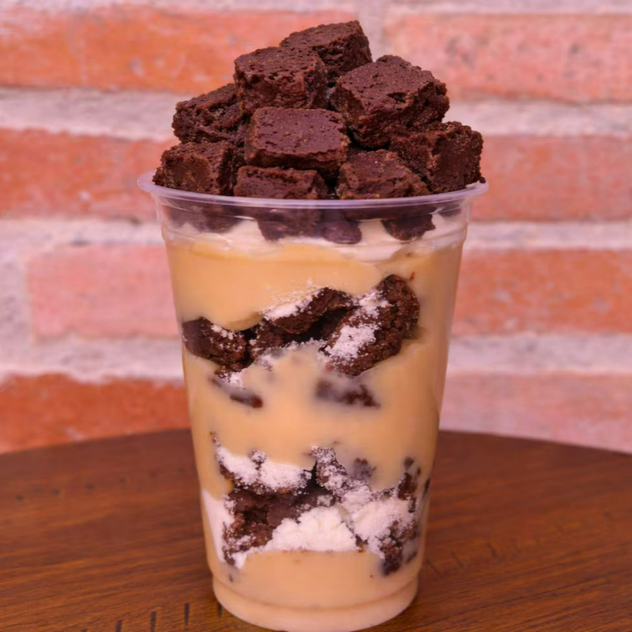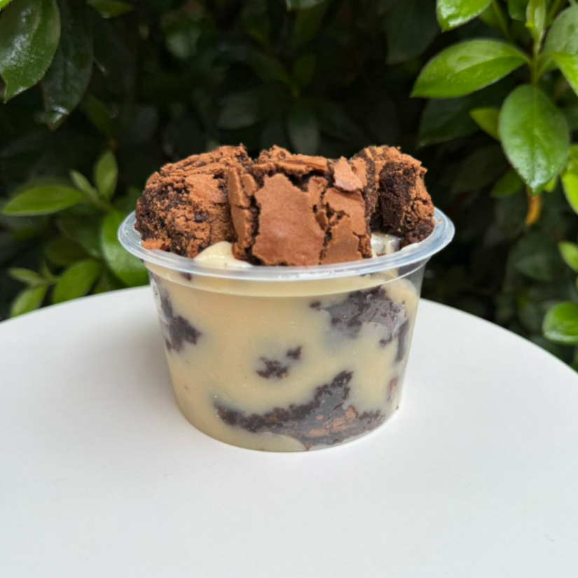 Nosso delicioso Brownie acompanhado com creme de Ninho. Pote 250.
