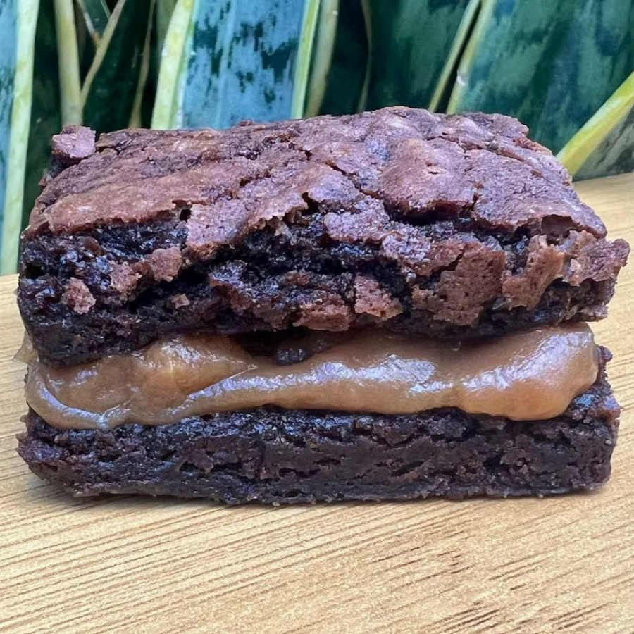 Duas fatias do nosso delicioso brownie com recheio de doce de leite