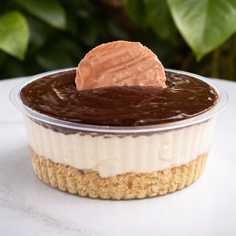 O clássico! Sobremesa cremosa e bem equilibrada, feita com camadas de creme de chocolate, creme de baunilha e biscoito. Pote de 170 ml. Peso aproximado de 140 g