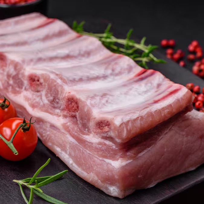 Costelinha de porco com 500g de carne macia e saborosa. Ideal para assados, grelhados ou churrascos, trazendo um prato irresistível e cheio de sabor para suas refeições.