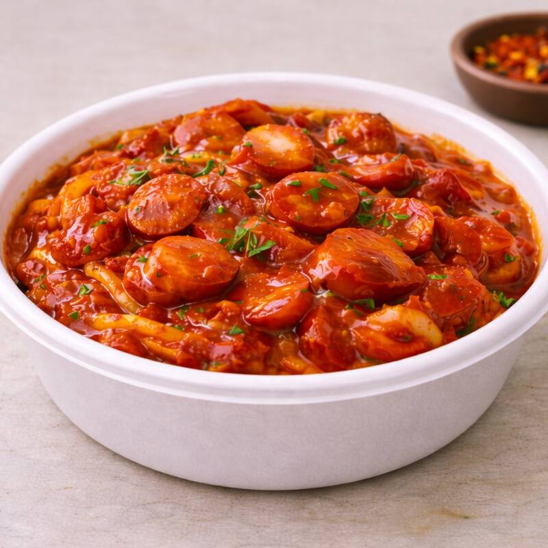 Molho de tomate com rodelas de salsicha.