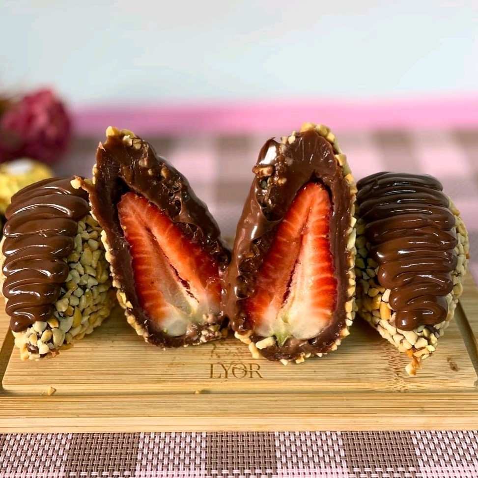 Morango inteiro envolto em um brigadeiro gourmet inspirado no sabor do Ferrero Rocher, coberto com chocolate ao leite e finalizado com amendoim triturado e Nutella. Uma sobremesa sofisticada, que combina o frescor da fruta com o sabor marcante do chocolate, a crocância do amendoim e a saborosa Nutella. Um verdadeiro luxo em forma de doce!—————–tags—————–– Entrega rápida, desconto, promoção, 0,99, 0800, off, cupom, barato, melhor preço, oferta, frete grátis, descontão, preço baixo, doces, bolos, brigadeiro, docinhos, kit festa, aniversário, bolo de pote, chocolate, morango, sobremesa natalina, Nutella, copo da felicidade, brownie, confeitaria, doceria, gourmet, bombom, piscina, ganache, caseiro, vovó, bento cake, vulcão, red velvet, trufas, banoffe, pudim, doce de leite, pão de mel, Oreo, Kit Kat, Ferrero Rocher, cheesecake, tartelete, Ninho, cupcake, afogadinho, bolo, brigadeirão, mini, cascão, cone, dois amores, torta caseira, torta salgada, salgado, salgado frito, salgado assado