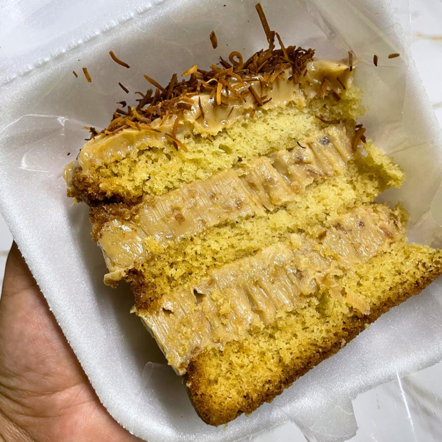 🥥🔥 Fatia Generosa de Bolo de Coco Queimado Uma fatia bem servida do nosso irresistível bolo de coco queimado, super macio e molhadinho na medida certa! Feito com coco caramelizado que traz aquele sabor intenso, levemente tostado e com aroma apaixonante. Cada pedaço é preparado com ingredientes selecionados, garantindo textura fofinha por dentro e uma cobertura dourada por fora que derrete na boca. Perfeito para acompanhar um café fresquinho ou matar aquela vontade de um doce caseiro feito com carinho. 💛 ✨ Experimente e se apaixone a cada mordida!