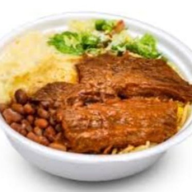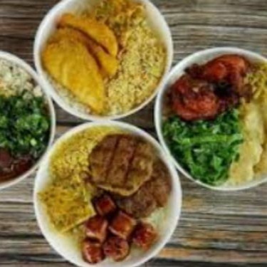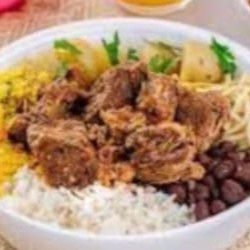 Arroz, feijão, farofa e você escolhe duas carnes e duas guarnições