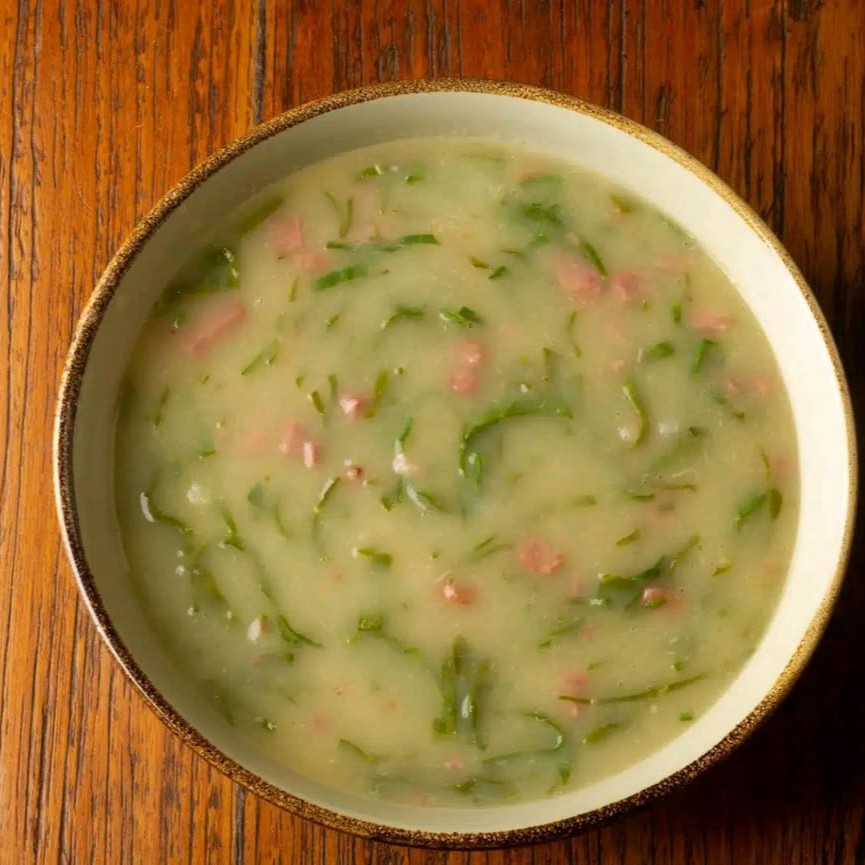 O 'Caldo Verde' é um dos caldos mais adorados e apreciados. Este prato clássico é cuidadosamente preparado com batatas selecionadas, calabresa e couve finamente picada, resultando em uma combinação perfeita e harmoniosa de sabores. O 'Caldo Verde' é mais do que um prato, é um convite a um momento de conforto e prazer.