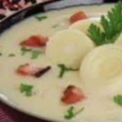 Preparado com a base de batata e palmito no liquidificador. Finalizando com pedaços de palmito. Com caldo de legumes caseiro. Simplesmente uma delícia.