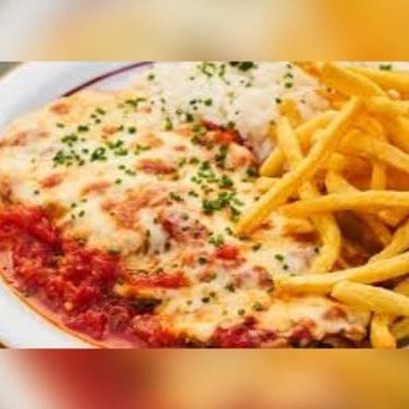 Uma delícia da culinária italiana, preparada com dois bifes de coxão mole empanados e cobertos com saboroso molho de tomate caseiro e mussarela derretida, acompanha arroz branco, batata frita ou purê de batata (a escolher) e salada de folhas verdes, tomate e cebola. Cada item entregue em embalagens individuais.