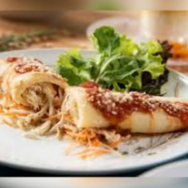 Panqueca De Frango Com Arroz E Salada