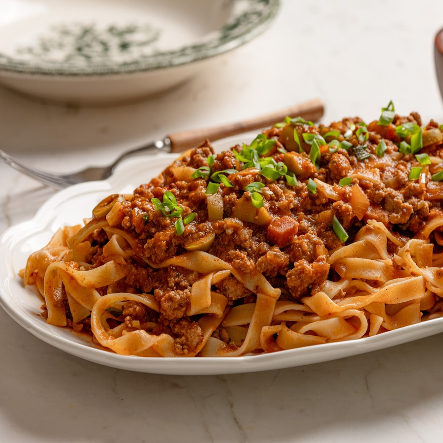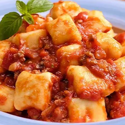 Molho de tomates caseiro refogado com carne vermelha.