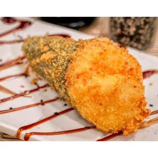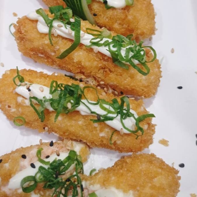 Recheio de salmão com cream cresse, empanado e frito