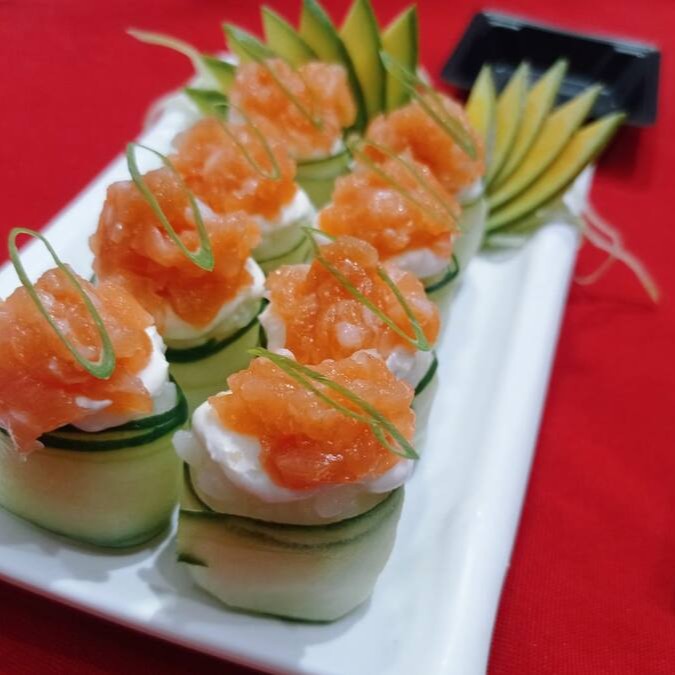 Recheio de pepino, por fora arroz e cream cheese