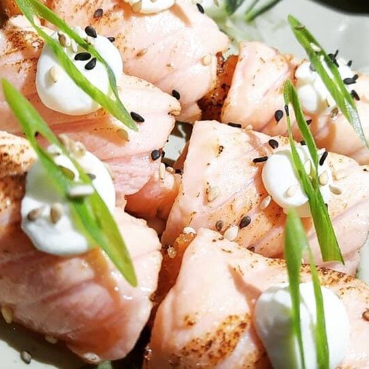 Joe de salmão e cream cheese maçaricado