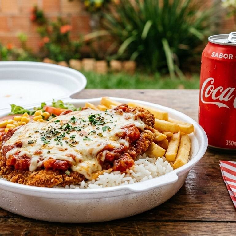 Aquele clássico que nunca erra: parmegiana caprichada e uma Coca trincando!