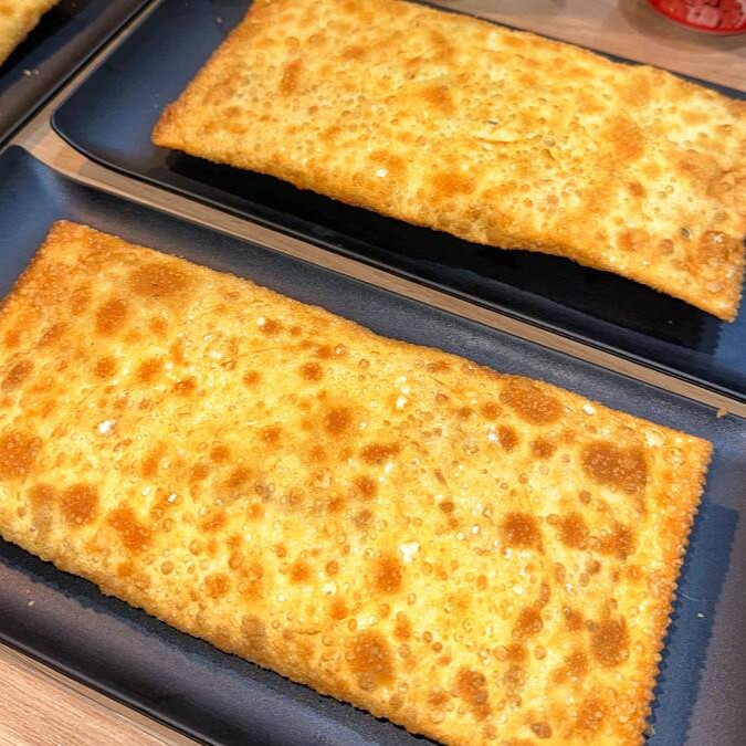 Muçarela derretida, tomate fresco e orégano (Não vai presunto), tudo dentro de uma massa douradinha e crocante. Simples, leve e irresistível