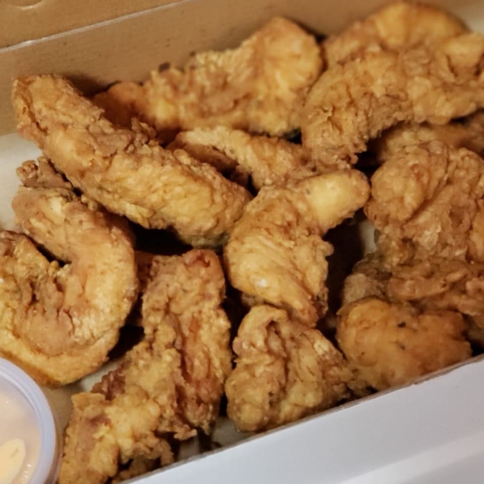 Frango Frito 1kg de filezinho de sassami + 4 molhos Atenção: - frango pesado in natura (ou seja, antes do preparo) - não acompanha batata Obs: Todos os nossos cortes de frango são empanados com o exclusivo tempero Chicken Box