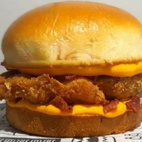 Delicioso Pão brioche com nosso filezinho crocante acompanhado de uma combinação perfeita de cheddar e bacon. Experimente !