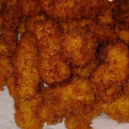 Deliciosos pedaços do peito do frango bem temperados empanados na farinha pank crocante por fora suculente por dentro.600 gm coisa linda
