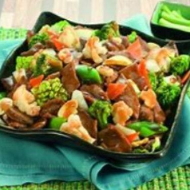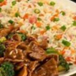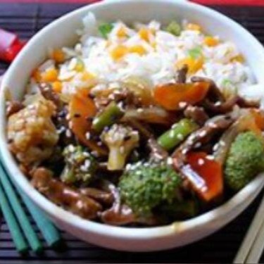 Pedaços De Carne Com Legumes E Champignon,Com Arroz Yakimeshi.Temperado Com Delicioso Molho Shoyo.Coisa Linda