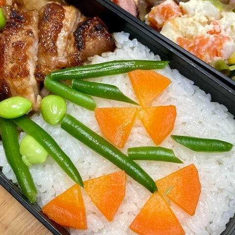 Acompanha: Gohan, Legumes na manteiga e 1 Harumaki de queijo e 1 de legumes.