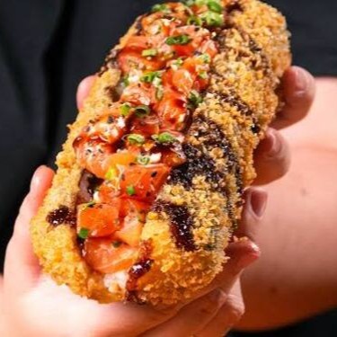12 unidade de Hot Roll salmão empanado e frito