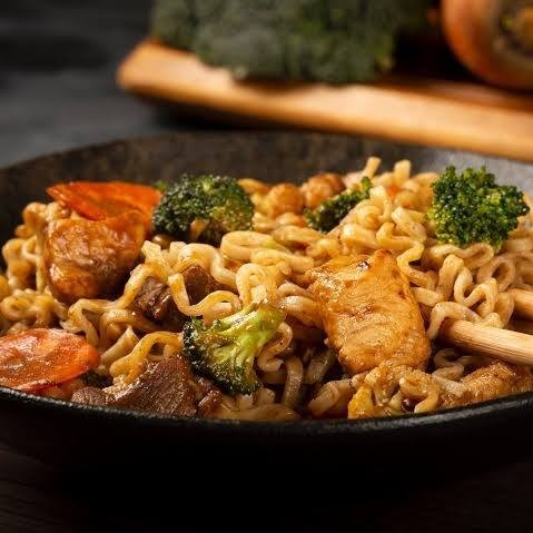 Yakissoba Camarão,Shimeji ou Salmão não acompanha Carne e Frango.