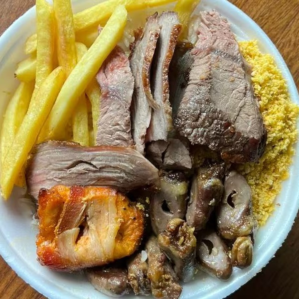 acompanha arroz feijao farofa batata frita frango linguica e carne bovina
