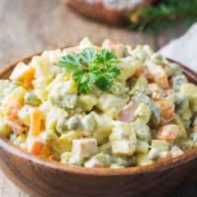 Maionese caseira feita com legumes selecionados.