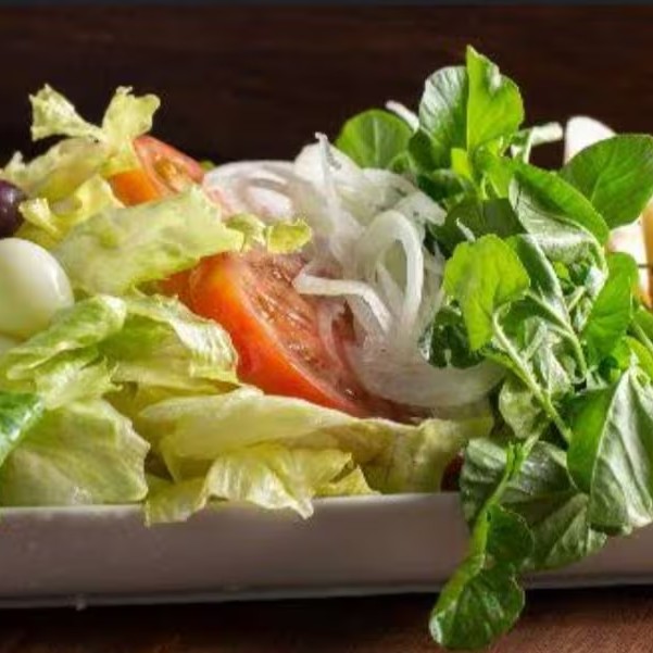 Deliciosa salada que companha alface , rucula , cebola ,tomate .Serve ate 3 pessoas.