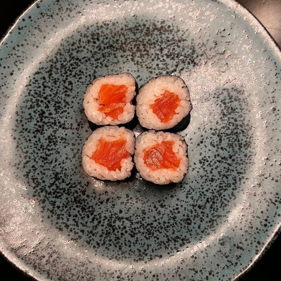 Recheado com salmão e cream cheese finalizado com pimenta togarashi, raspa de limão e gergelim