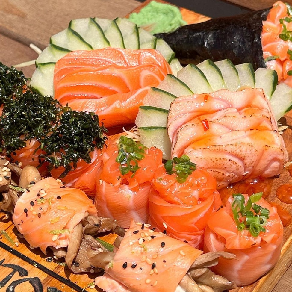 8 salmao grelhado 1 shimeji 2 temaki ( da sua escolha) 10 sushis variados