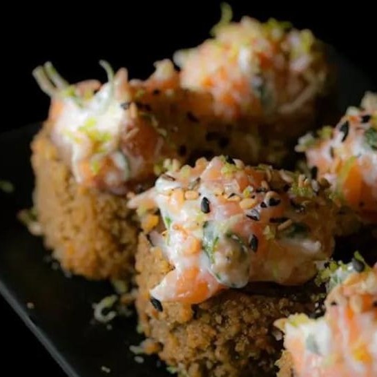 Salmão com cream chese, tabasco e flocos de arroz